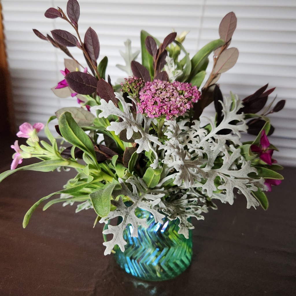 Stock, Yarrow, Dusty Miller, and Fringe Flower