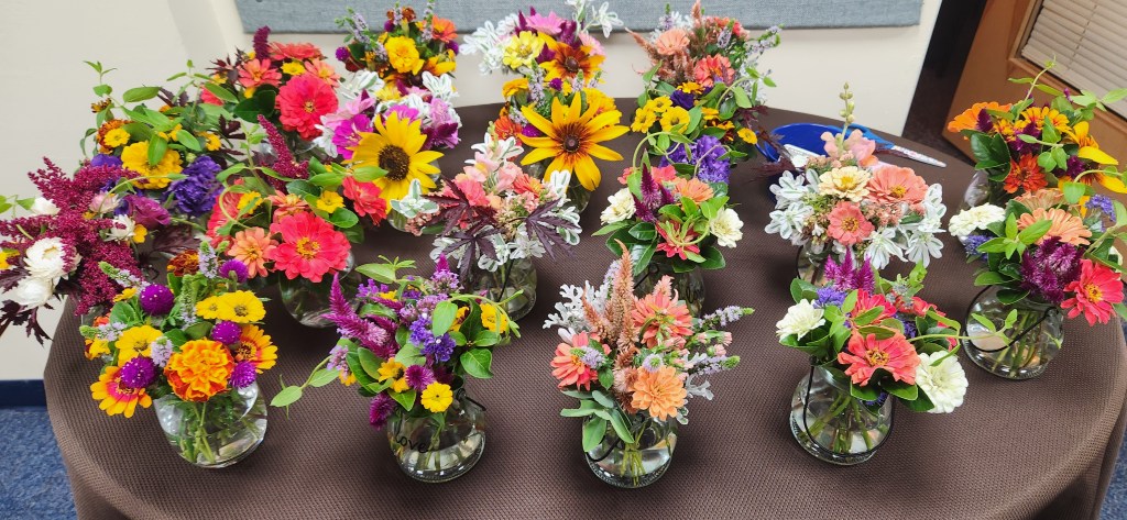 Flower power Friday I can’t tell you how much my heart sings when we sell out of flowers. Twenty-three bouquets today! Share this: Click to share on X (Opens in new window) X Click to share on Facebook (Opens in new window) Facebook Like Loading... Related